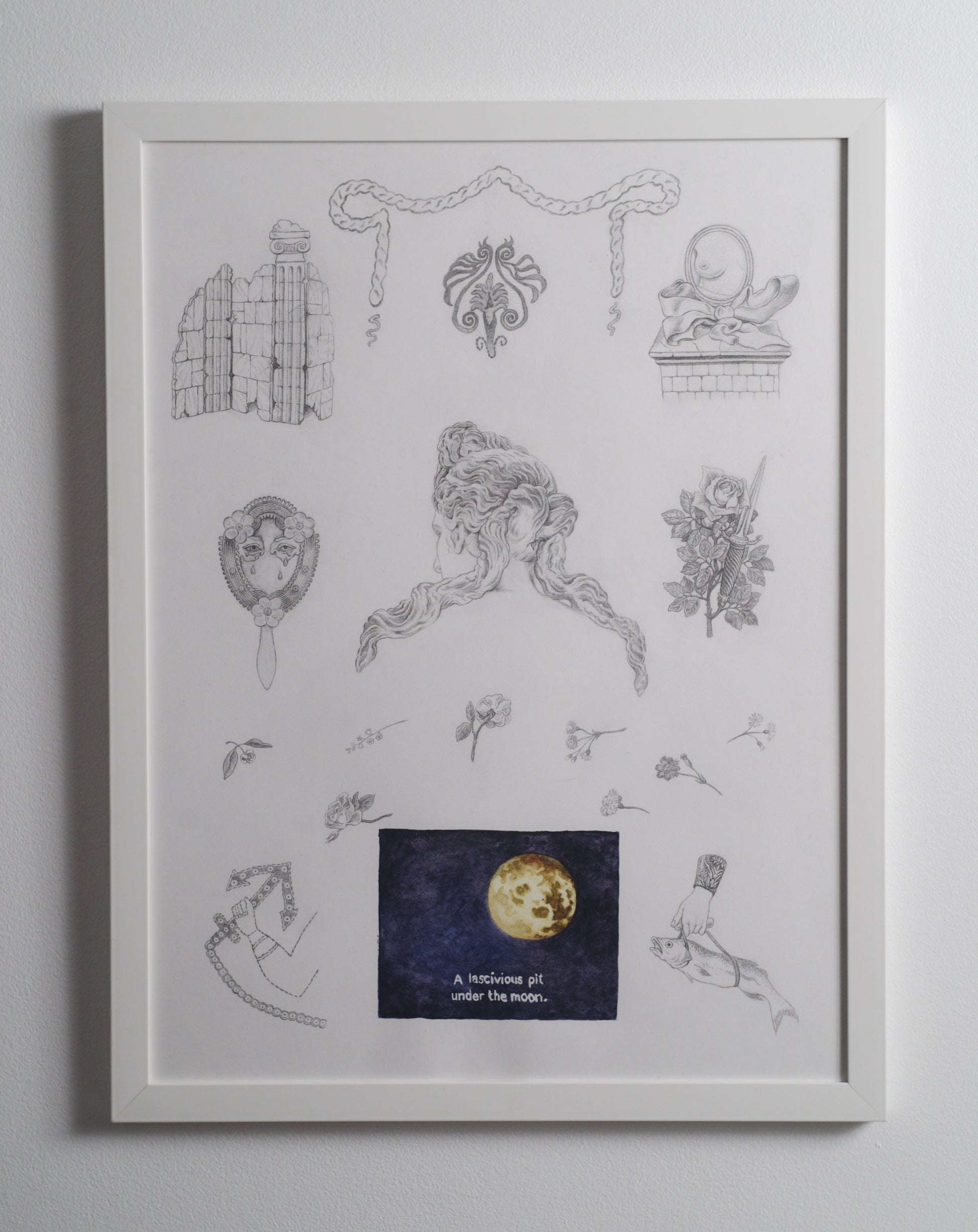 Graphite and watercolour on paper, framed.