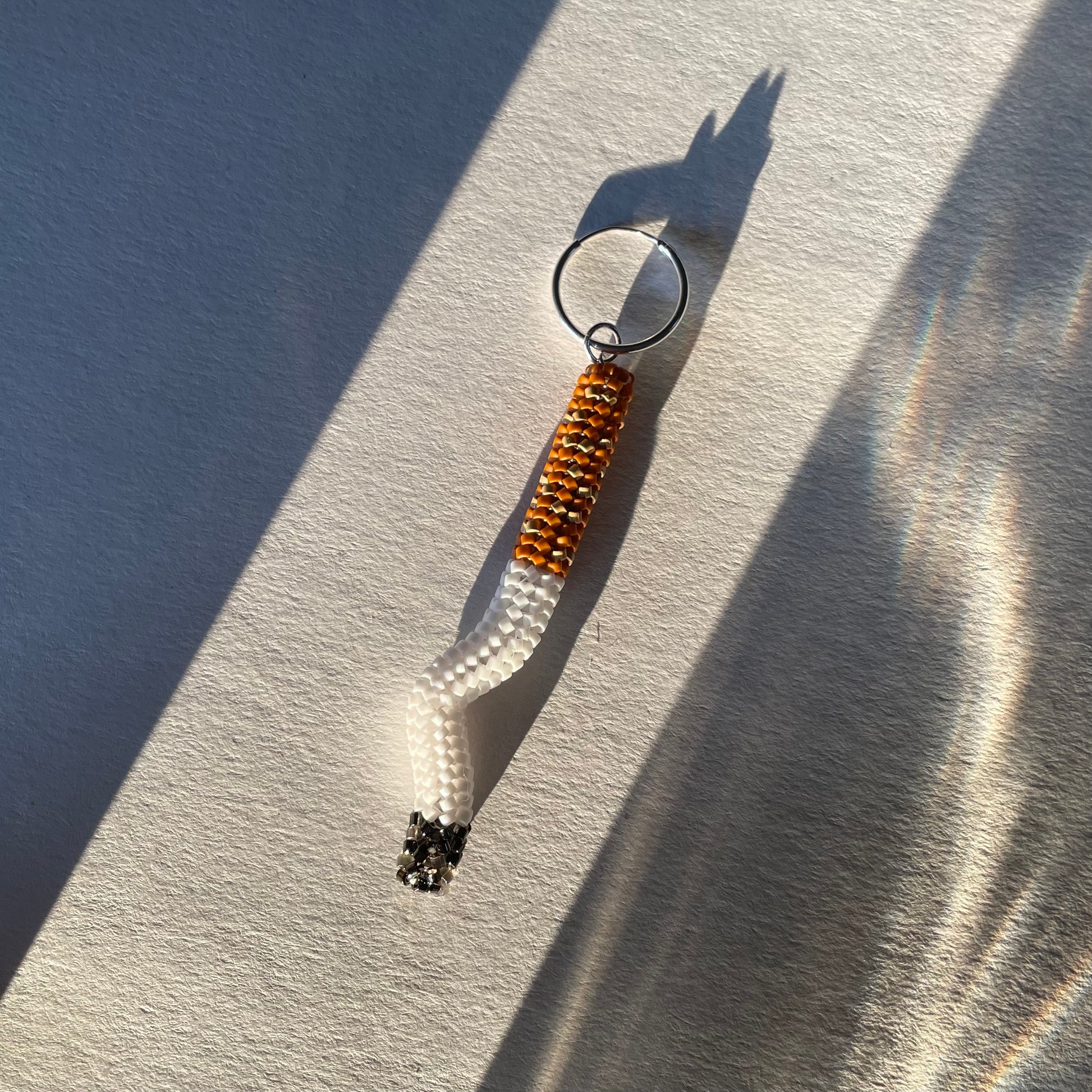 Single hand-beaded classic crushed butt earring hanging from a 5/8" hoop.
