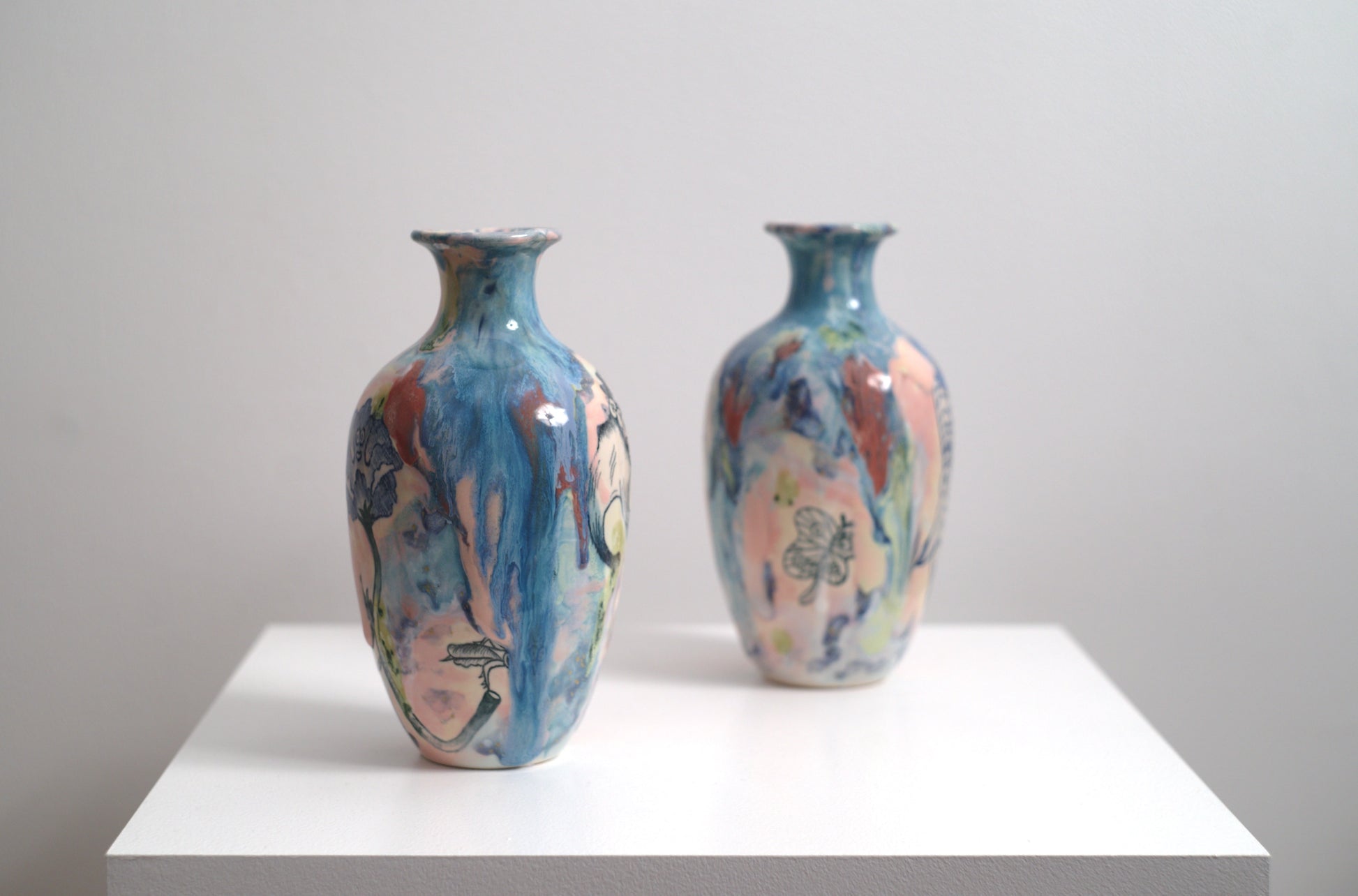 Stoneware ceramic, underglaze, glaze, multi-fired to cone 6